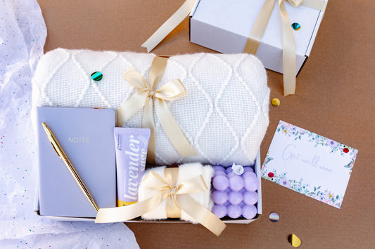 Lavender Delight Gift Box – Blanket, Candle, Socks & Lotion
