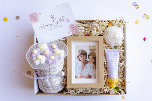 Love You, Mom Gift Box – Peony Candle, Lavender Lotion & Photo Frame