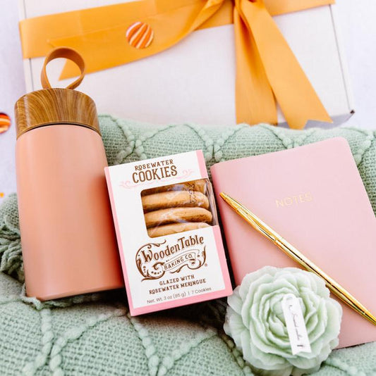 Cozy Gift Box with Knit Blanket, Tumbler, Notebook & Cookies | Relax & Self-Care Set
